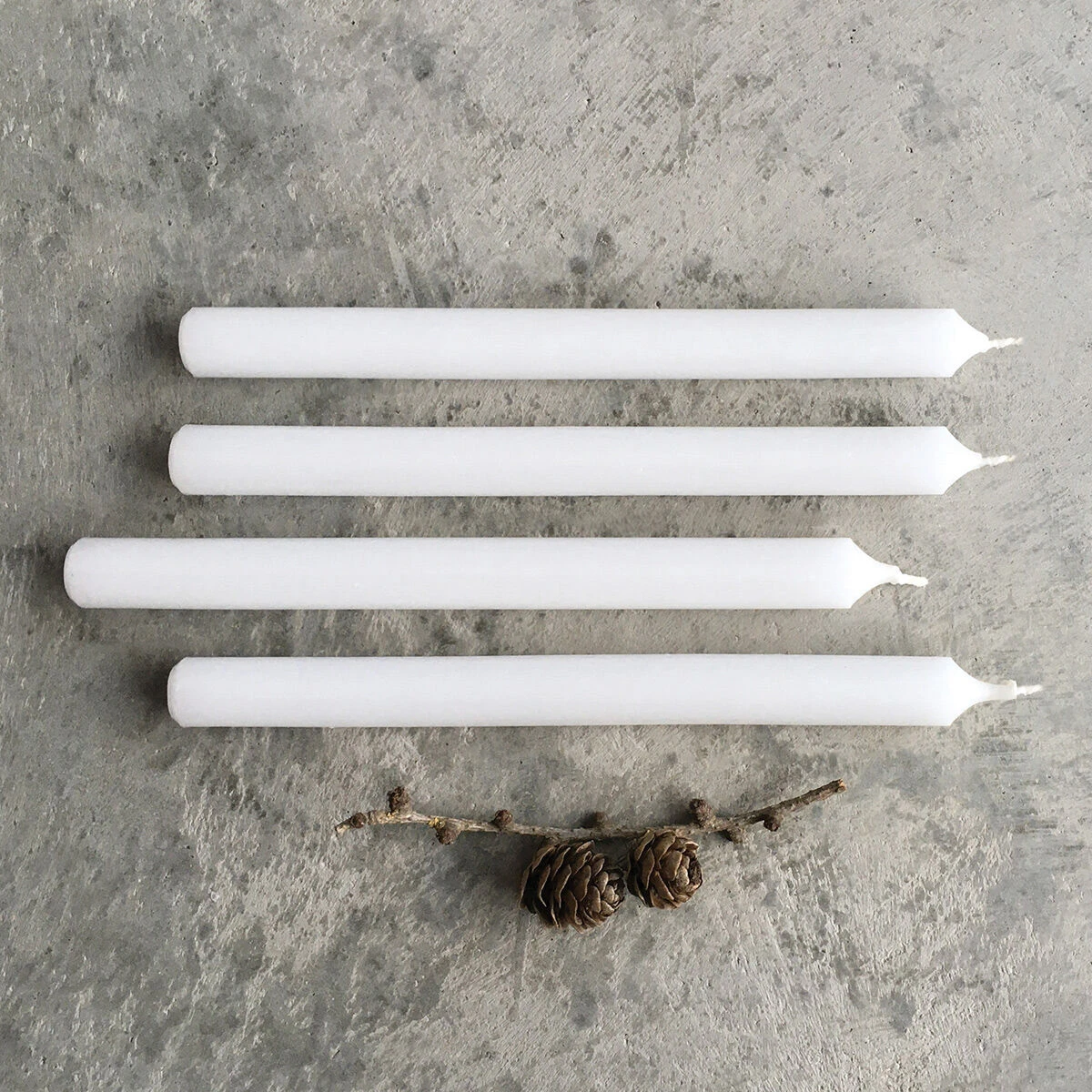 The box contains 250 white pillar candles tied together with a piece of twine. These thin, tall candles are perfect for sitting in your candle holders and decorating your home this Christmas.