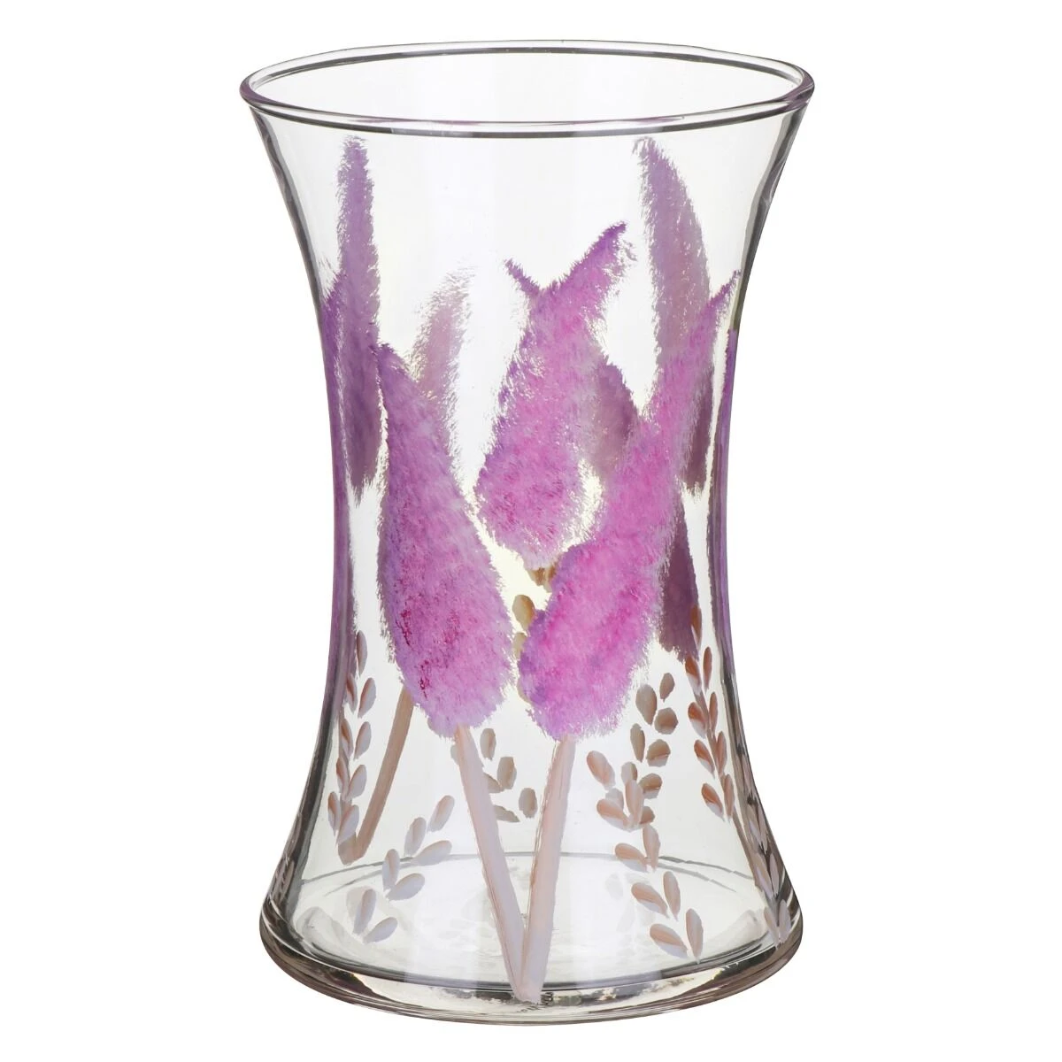Adorning this magnificent glass vase is a plethora of vibrant purple pampas and wheat grasses. The illustrations are all hand painted and were designed by the artist Lynsey Johnstone that make this vase look exquisite.