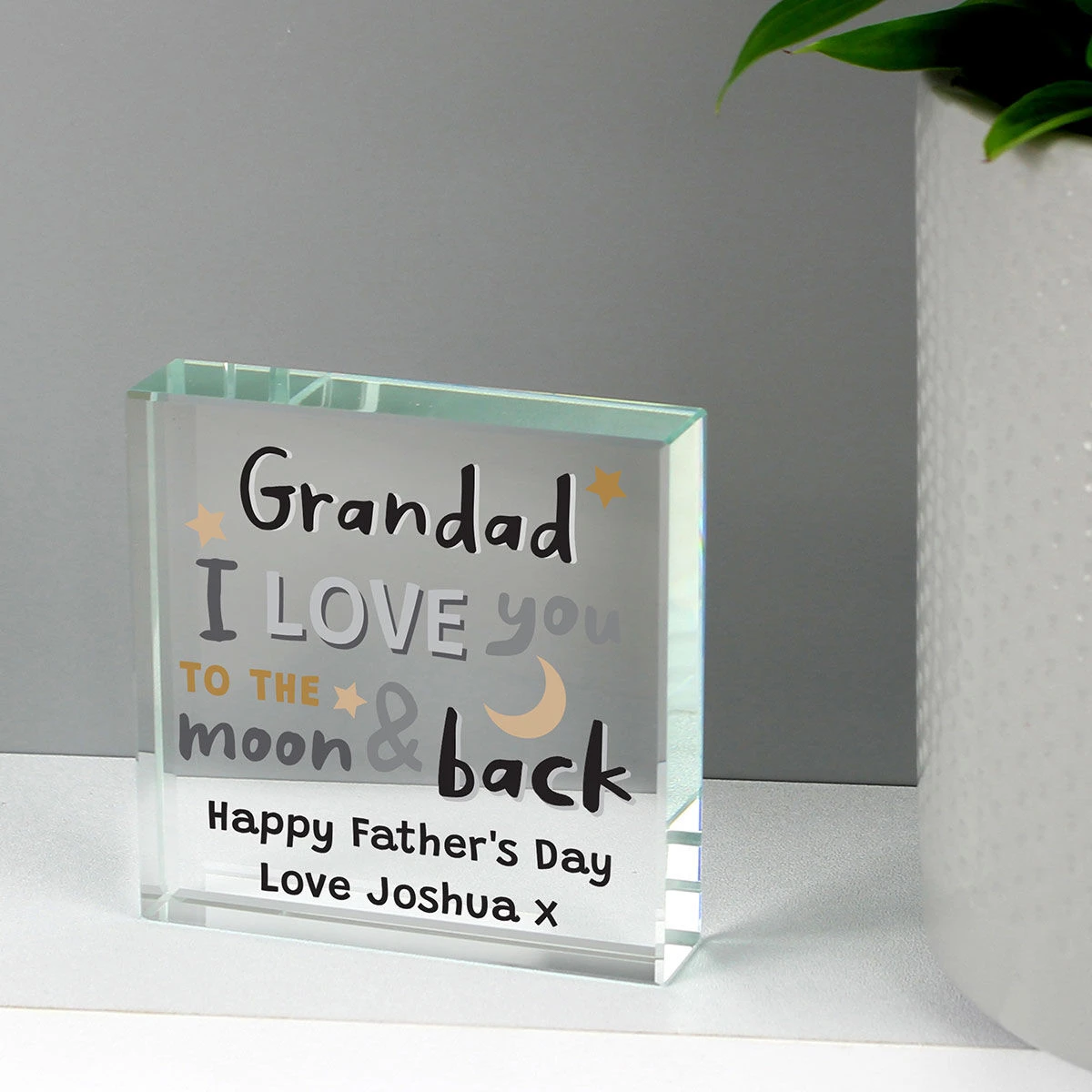 Create the perfect gift for birthdays, Christmas, Mother’s Day, or Father’s Day with this personalised ‘To The Moon and Back’ crystal token.