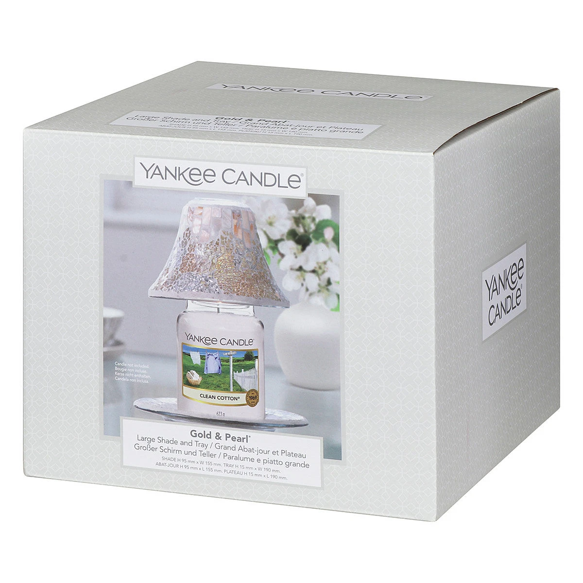 Yankee Candle Boxed Gold & Pearl Crackle Large Shade & Tray