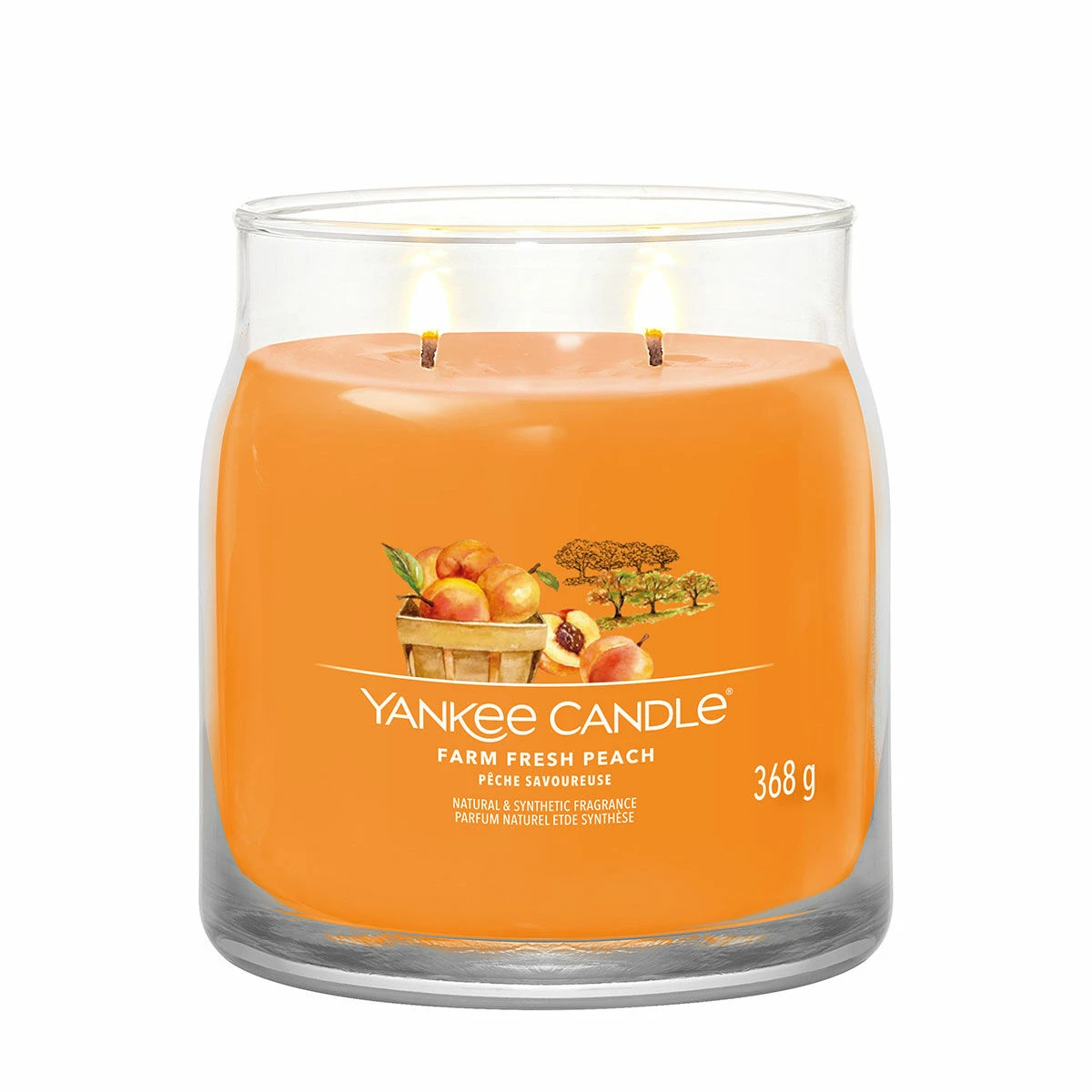 Enjoy the wonderful Farm Fresh Peach fragrance in the wonderful Signature Medium Jar Candle, a sleek glass vessel that compliments the fragrance and will look wonderful in your home. The wonderful fragrance from Yankee Candle has fresh aromas of peach and apricot will make your mouth water for farm fresh, autumnal delicacies.