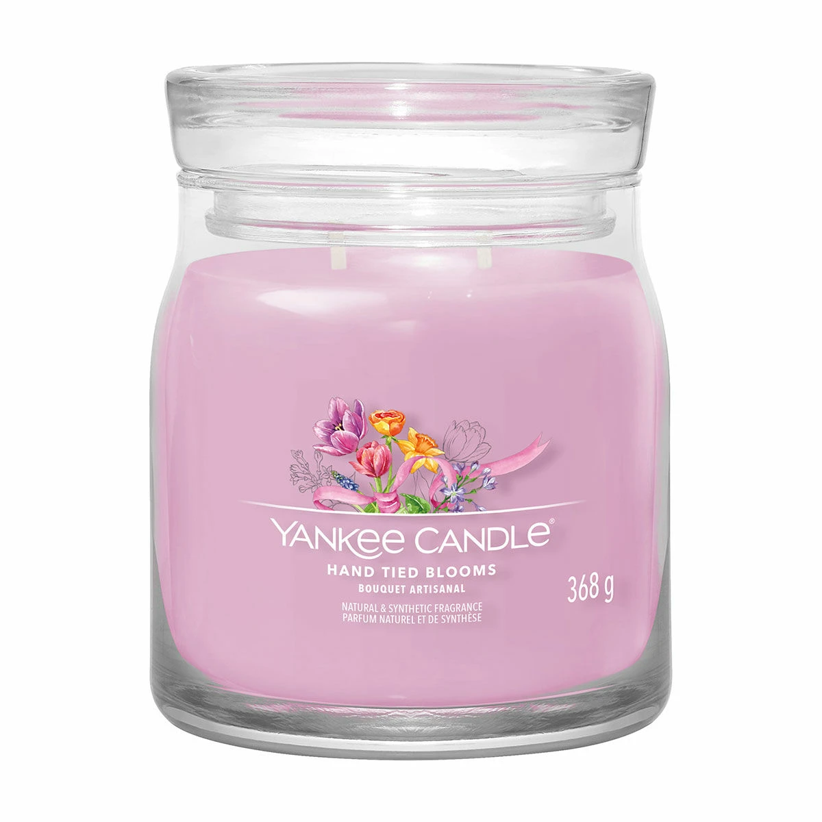 Enjoy the wonderful Hand Tied Blooms fragrance in the wonderful Signature Medium Jar Candle, a sleek glass vessel that compliments the fragrance and will look wonderful in your home. The wonderful fragrance from Yankee Candle is reminiscent of hand-tied bouquets combining beautiful spring blooms, creating a colourful tapestry of aromas.